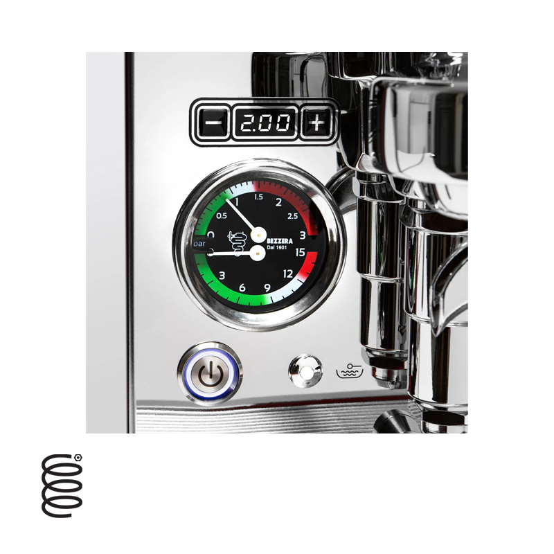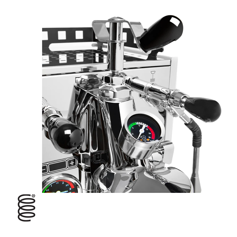 - Dual pressure gauges make it easy to read the boiler and brew pressure.