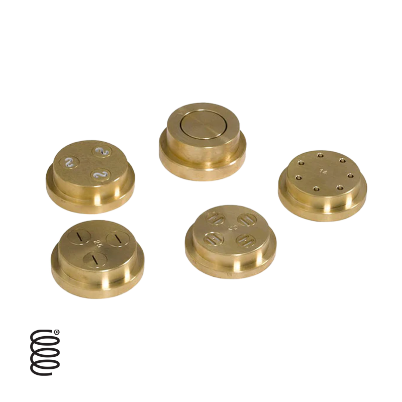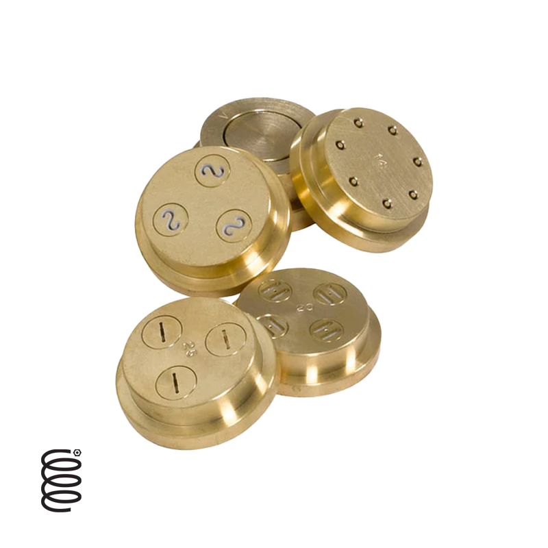 The machine has 4 standard plates. and various pasta formats and an automatic short pasta cutter are available on request.